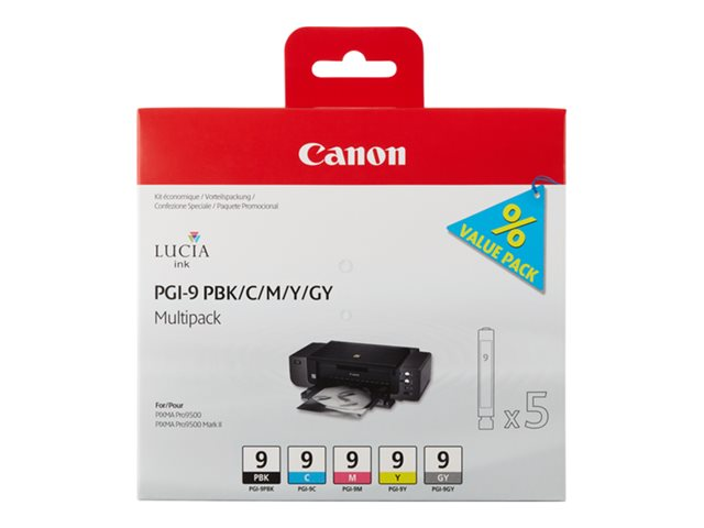 Canon PGI-9 PBK/C/M/Y/GY Multi-Pack - 5-pack - grå, gul, cyan, magenta, fotosort - original - blekkbeholder - for PIXMA iX7000, MX7600, Pro9500, Pro9500 Mark II