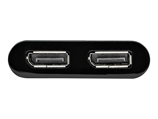 - Connects two DisplayPort monitors simultaneously for multitasking