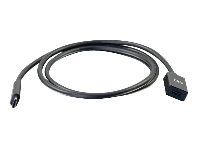 C2G 3ft USB-C to C 3.1 (Gen 1) Male to Female Extension Cable (5Gbps) - USB-forlengelseskabel - USB-C (hann) til USB-C (hunn) - USB 3.1 Gen 1 / Thunderbolt 3 - 3 A - 90 cm - formstøpt - svart