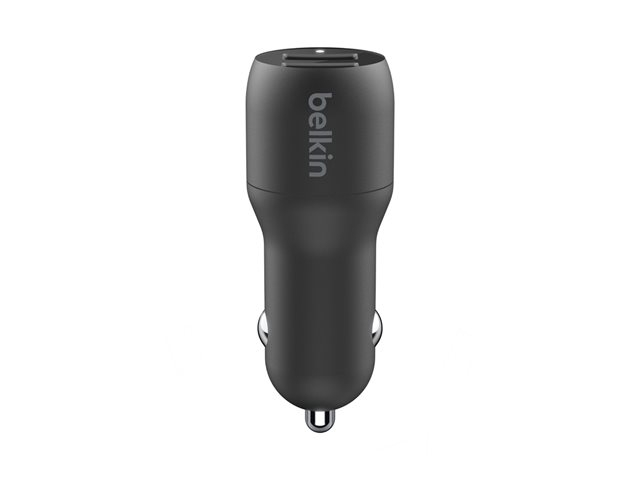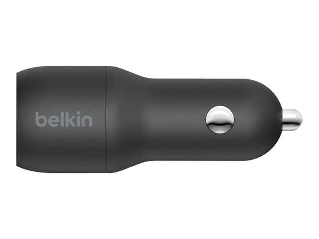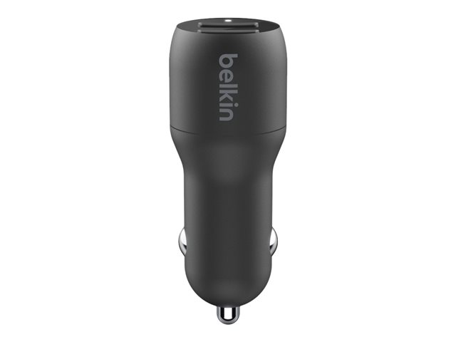 Belkin BoostCharge Dual Charger - Bilstrømadapter - 24 watt - 4.8 A - 2 utgangskontakter (USB) - på kabel: USB-C - svart CCE001BT1MBK