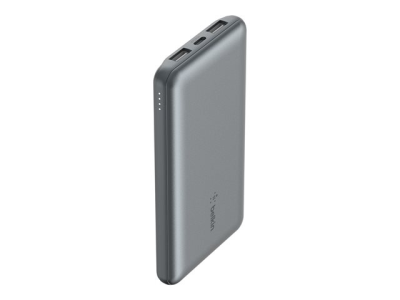 Belkin BoostCharge - Strømbank - 10000 mAh - 15 watt - 3 A - 3 utgangskontakter (2 x USB, USB-C) - på kabel: USB-C - romgrå BPB011BTGY