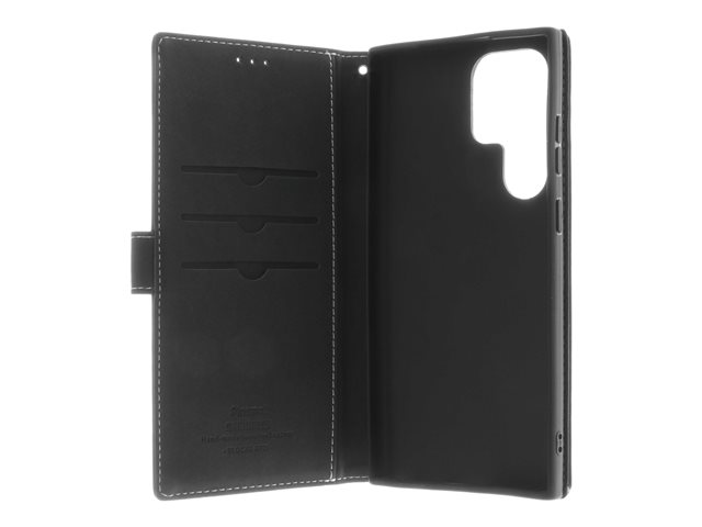 Insmat Exclusive - Lommebok for mobiltelefon - ekte skinn, papir, polyuretan, kartong, bomull, aluminiumsfolie, bronse, termoplast-polyuretan (TPU) - svart - for Samsung Galaxy S23 Ultra