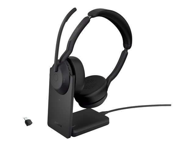 Jabra Evolve2 55 UC Stereo - Hodesett - on-ear - Bluetooth - trådløs - aktiv støydemping - USB-C - svart - med ladestativ - Zoom Certified, Cisco Webex Certified, Optimized for Microsoft Teams, Alcatel-Lucent Certified, Avaya Certified, Unify Certified, MFi Certified, Amazon Chime Certified