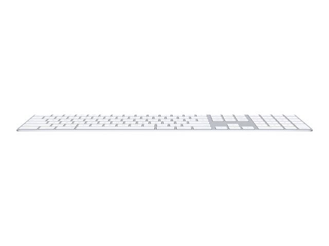 Magic Keyboard med numerisk tastatur har en utvidet layout med dokumentnavigasjonskontroller for rask rulling og piltaster i full størrelse for spilling. En saksemekanisme under hver tast gir økt stabilitet, mens optimalisert tastevandring og lav profil gir en komfortabel og presis skriveopplevelse. Det numeriske tastaturet egner seg også ypperlig til regneark og økonomiprogrammer. Og det innebygde, oppladbare batteriet har en utrolig lang levetid, slik at du kan bruke tastaturet i omtrent en måned eller mer mellom hver lading.