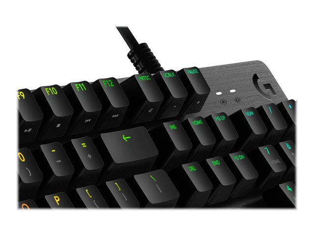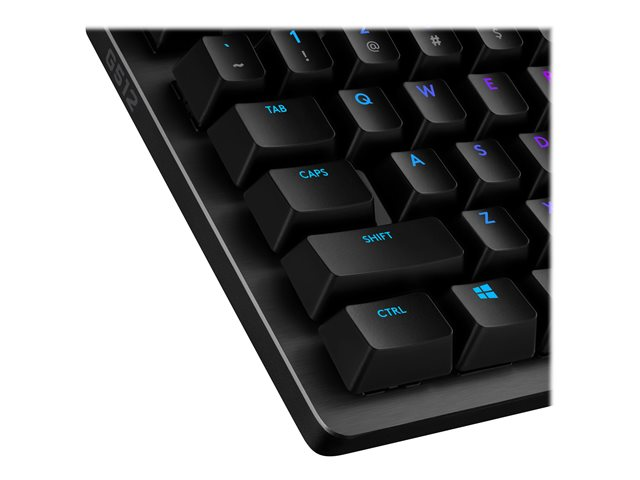 G512 er et ypperlig spilltastatur med valg av avanserte Romer-G Tactile, Romer-G Linear og GX Blue mekaniske brytere. Med avansert spillteknologi og en konstruksjon basert på aluminiumslegeringer, er G512 enkel, slitesterk og full av funksjoner. Bilder som vises er av G512 med Romer-G nøkler.