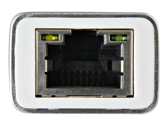 Use this sleek aluminum converter to add a Gb Ethernet port to your MacBook, Chromebook or laptop with USB Type-C. Now, you can easily connect to a Gigabit network through the USB-C port on your laptop. This Gigabit Ethernet (GbE) network adapter delivers reliable network connections - without even having to install drivers. Its sleek silver design looks great with your MacBook, and any laptop or Chromebook with a similar look. It's also compatible with Thunderbolt 3 ports.