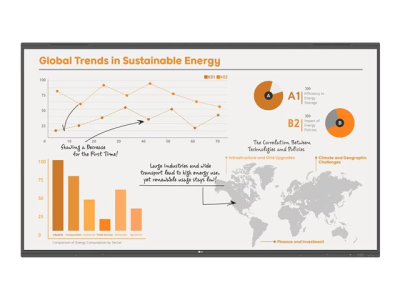 LG CreateBoard 86TR3PN er designet for dynamiske utdannings- og forretningsmiljøer, og kombinerer teknologi med brukervennlige funksjoner. Med en levende 86-tommers 4K UHD-skjerm sørger denne kommersielle skjermen for at alle presentasjoner blir klare og engasjerende, takket være en oppløsning på 3840 x 2160 og en lysstyrke på 400 cd/m². Den innovative Direct LED-bakgrunnsbelysningsteknologien forbedrer bildekvaliteten, mens IPS LCD-teknologien gir brede visningsvinkler på opptil 178 grader, noe som sikrer at innholdet er lett synlig fra ulike posisjoner i rommet.