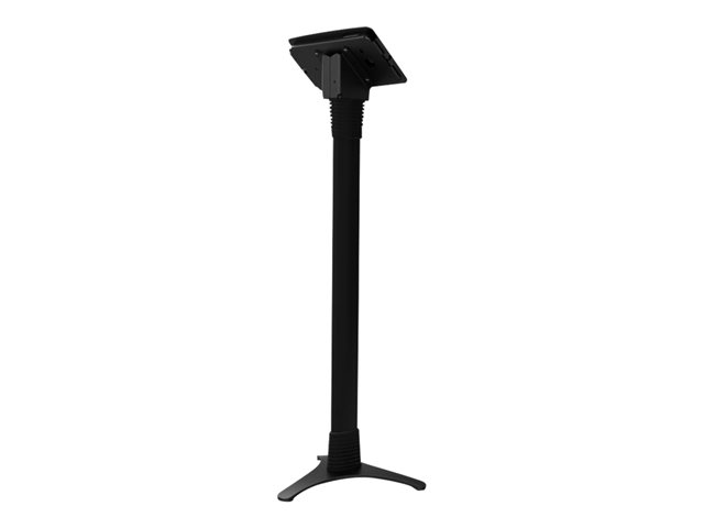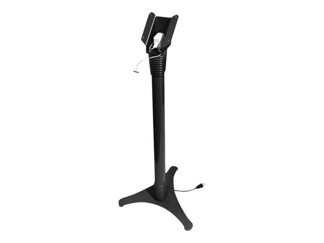 Vårt justerbare stativ kan stilles inn i ulike høyder: 39" - 45" / 100 cm - 115 cm, og stativet gjør det mulig å stille inn nettbrettet i enten stående eller liggende modus. Stativet er designet for maksimal stabilitet med en kraftig stålbase som gir kabelføring gjennom selve stativet. Under kabinettet er det et lite oppbevaringsrom for ladeenheten til nettbrettet.