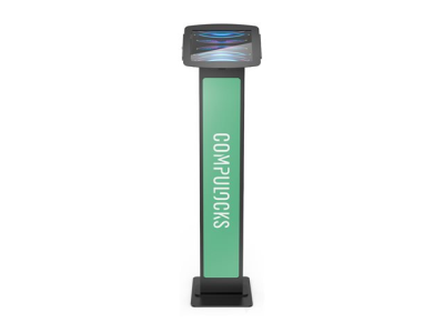 Our BrandMe floor stand allows you to utilize a panel for branding, call to action or custom design to bring attention to your interactive display or kiosk. The tilting mount allows the iPad enclosure to be set in either portrait or landscape mode and the stand base offers additional security features, securing the power source and bolting the unit to the floor.