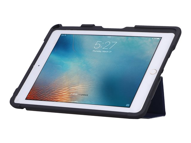 - Cover easily folds into stand without blocking camera