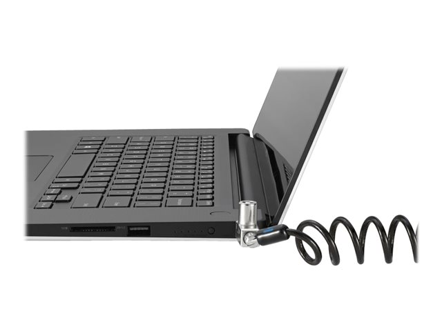 The Slim N17 2.0 portable keyed laptop lock for wedge-shaped slots is the perfect portable lock for Dell ultra-thin and 2-in-1 laptops since it won't block valuable ports and allows the laptop to lie flat and stable. Self-coiling carbon steel cable sheathed in plastic stretches up to 1.8 m and shrinks down to 76.2 mm. Meets or exceeds rigorous strength testing standards. Features an omnidirectional pivoting head and rotating anchor, 5 mm keying system. Master key provides administrative access, so the IT manager can have a key for all locks while each user has their own individual lock and key.
